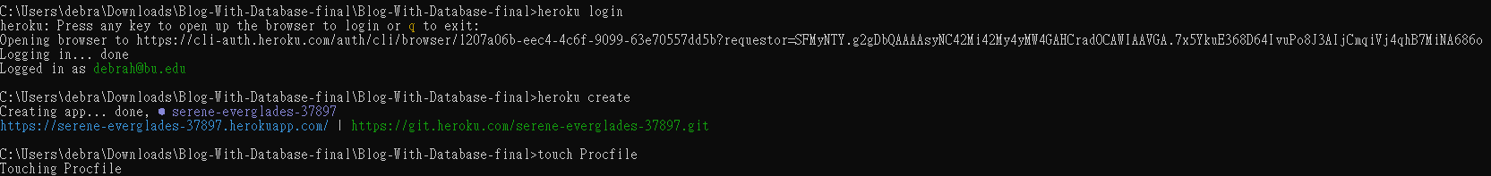 - heroku login (the login web pop out)