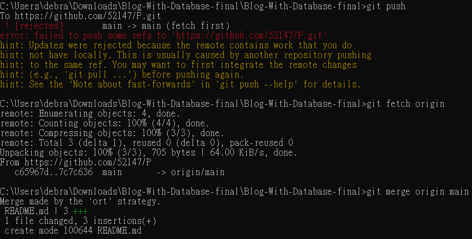 - git merge origin main