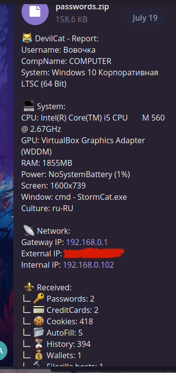- Steal system info (Version, CPU, GPU, RAM, IPs, BSSID, Location, Screen metrics)