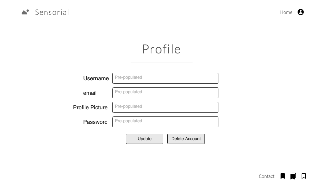 The user is also able to modify or delete their user profile if they choose to. On all pages once the user is logged in, their profile picture (or the default icon) will be located in the upper right corner and will be able to navigate them to their profile. Once their, the fields of username, email, password, and profile picture will be pre-populated and they'll be able to edit their information, or delete their profile if they choose to. Once they edit their profile they're redirected to their home page, and if they delete their profile they're then redirected to the initial landing page.
