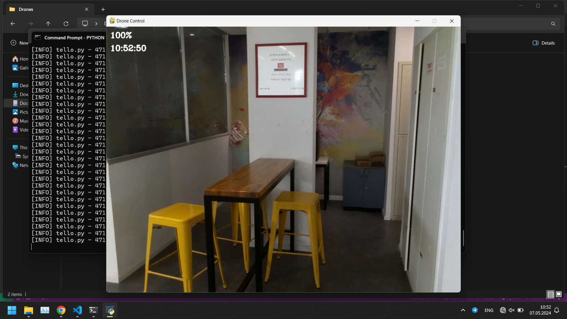 djitello_controller simple dji-tello drone controller functionality basic key control (movement, side of view, land, takeoff) speed boost (shift key) taking images from the camera (home key) battery status, speed, time on the screen