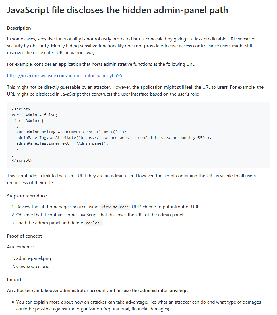 - You must write each step clearly in-order to demonstrate the issue. that helps security engineers to triage fast.