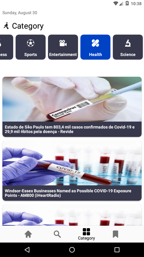 A News App developed get the latest and best news from newsapi.org API.