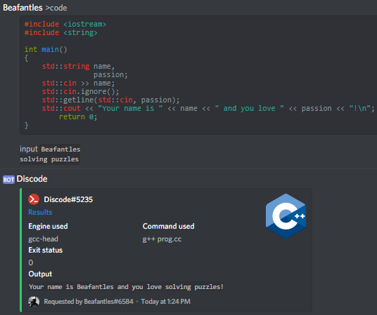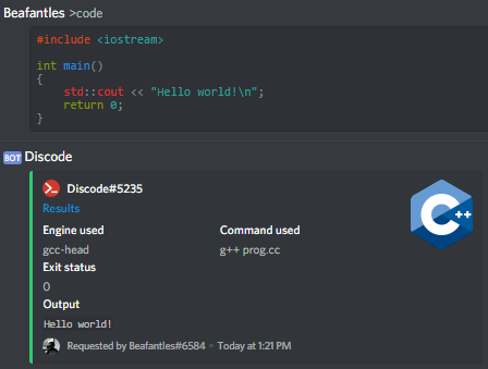Discode is a Discord bot that runs code.
