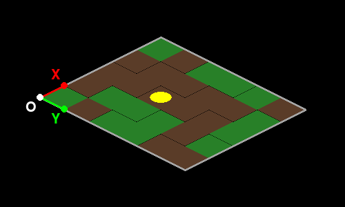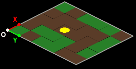 p_position = transform((column + 0.5, row + 0.5), (x_axis, y_axis)) + originIf you want to get the row and column depending on the mouse cursor, you need to do the opposite. You need to calculate the inverse 2x2 matrix from the x and y axis. Using the inverse matrix, you can calculate the row and column as a function of a point on the map: