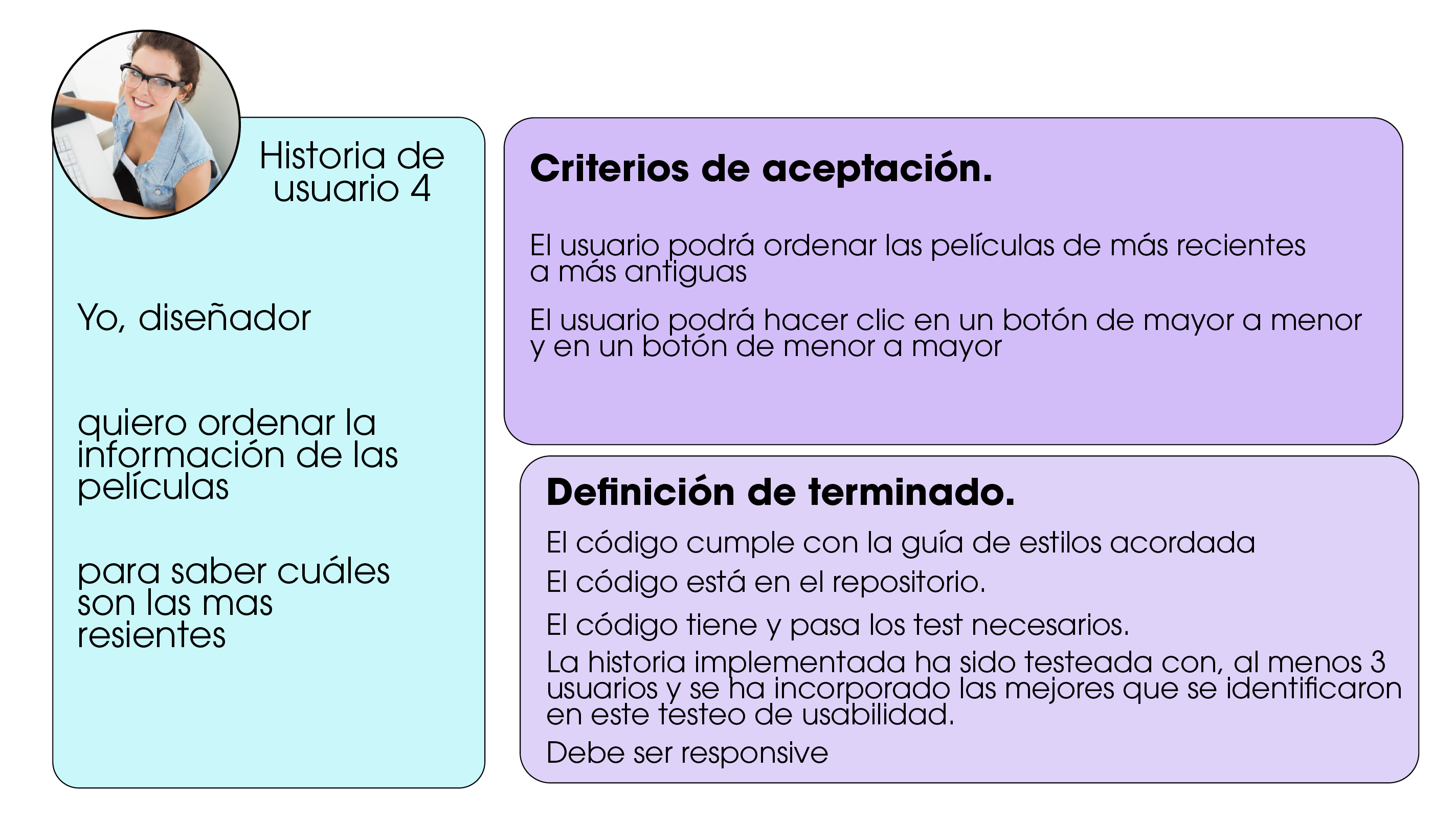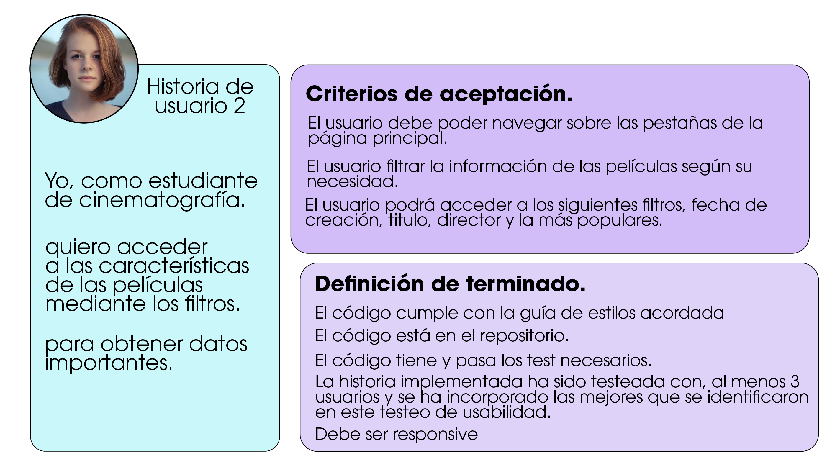 Con los tests de usabilidad nos dimos cuenta que la paleta de colores utilizada no era la más adecuada, hicimos cambios a una paleta de colores más monocromática y sobria. Los usuarios encontraron innecesario el botón de ordenar en la barra de navegación del header, por lo cuál obtamos por realizar dos botones que organizaran las tarjetas de las películas que estuvieran cerca de ellas y el buscador. También se hizo un cambio al ingresar a la información de cada película, ya que no scrolleaba hasta arriba automáticamente.