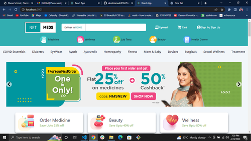 The main objective of this project is create clone of "Netmeds.com" website. It is Indian ecommerce website and it is popular for busing medicine and health related products.