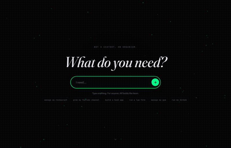 demo.askalf.org — Tell Alf what you need. Watch it design an agent team in real time.