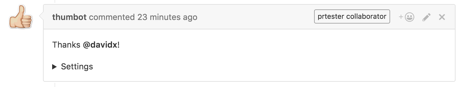 Thumbs was created to help validate and merge pull requests. It was initially developed as a replacement for Bors.