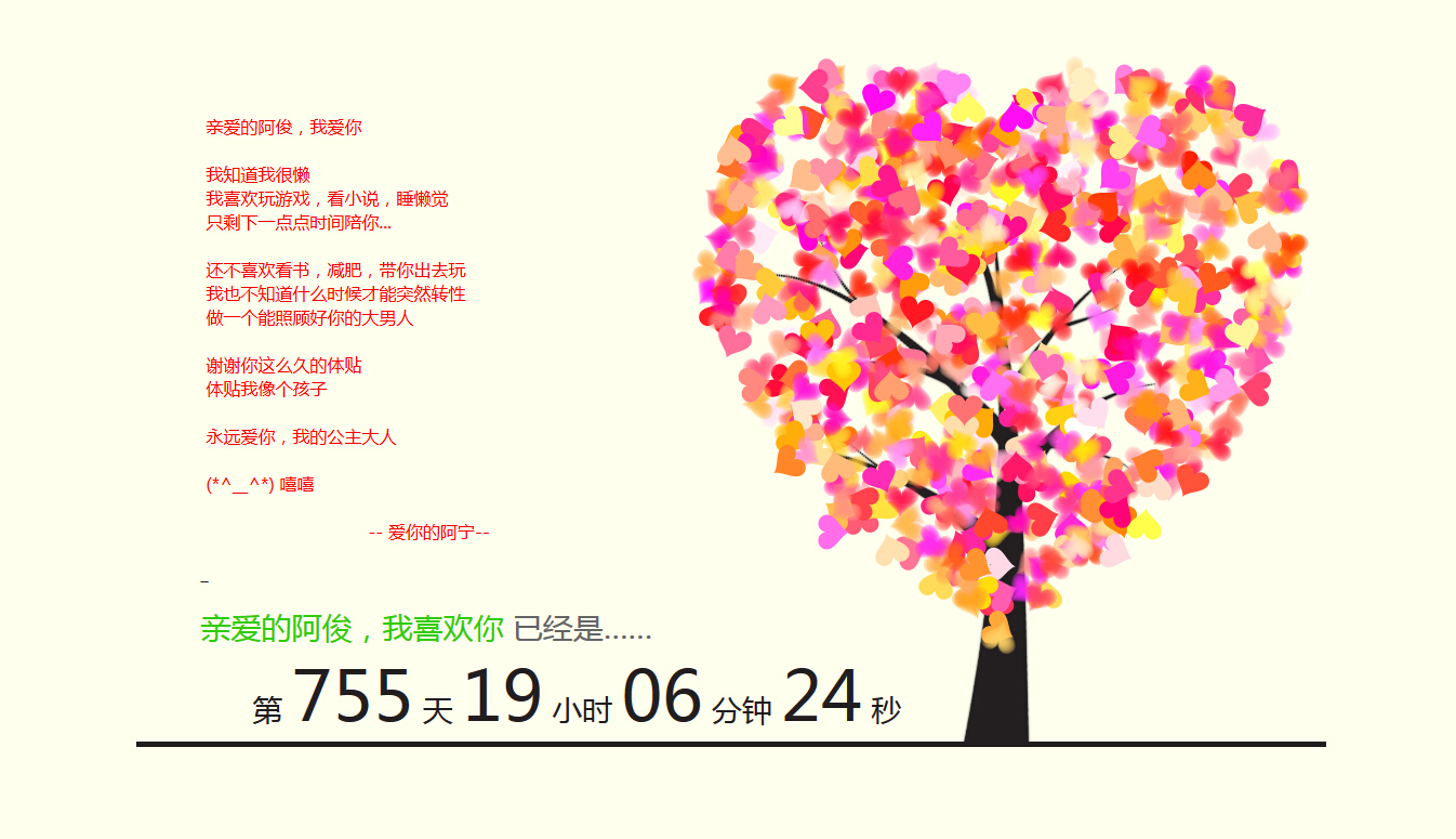 写给女朋友的一个小礼物,纪念一下开始时间。用浏览器打开index.html即可;