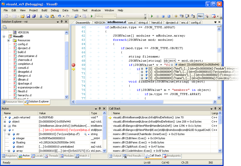 As of version 0.3.16 Visual D comes with the option to install the Mago debugger. This debug engine is dedicated to the D programming language and avoids the work-arounds needed when using the native debug engine. It also features D specific expressions like dynamic array slicing.