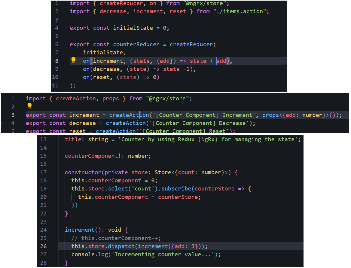 Project generated with Angular CLI version 17.3.12. Redux project that is configured to manage counter actions (increment, decrease, reset) by using store actions with props and reducer.