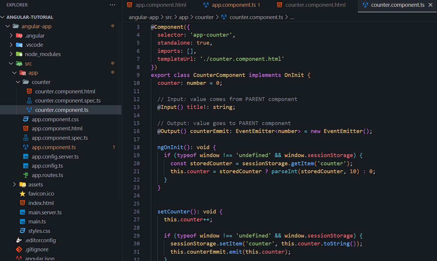 - Components: passing data between components and subcomponents via @Output() and @Input() annotations.