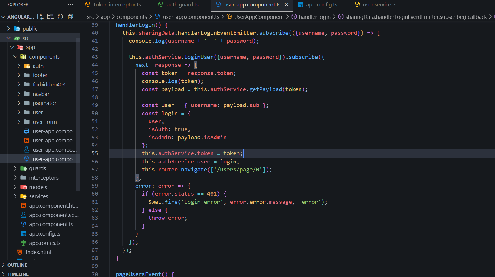 - Angular guards for managing roles and access to views.