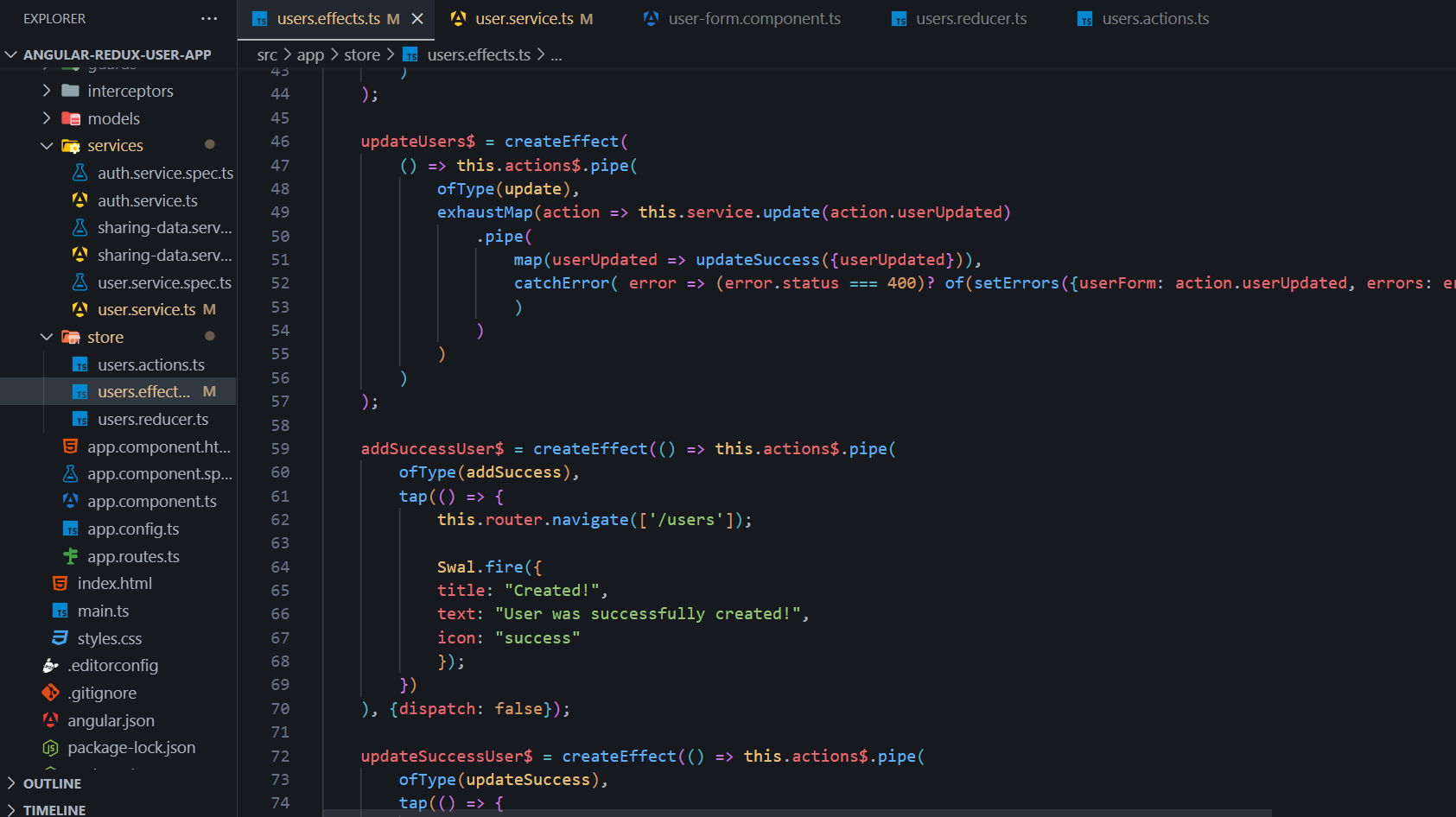Project generated with Angular CLI version 17.3.12. Project that uses angular NgRx for managing app actions by using store and effects. Alert messages with SweetAlert2 library. Styles with Bootstrap version 5.3.