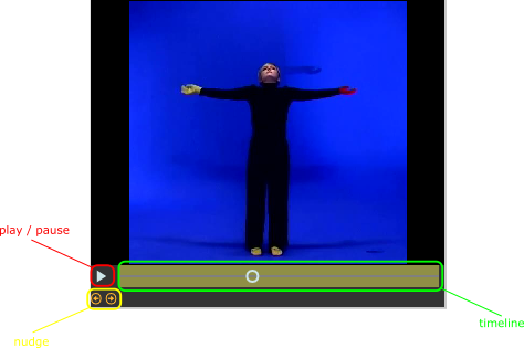 Next to the Play icon you can see the Timeline. This can be used to quickly skim through the video, and more importantly to select the trimming points of the analysis (see below).