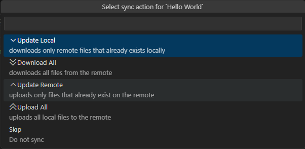 When opening a project you are offered a range of sync options.