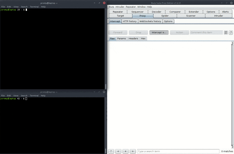 This demo shows an SSH session relayed through mitm_relay + Burp. This is pretty useless as it's SSH anyway and can't be altered (except maybe the initial handshake and list of ciphers), but it shows how you can work with binary protocols.