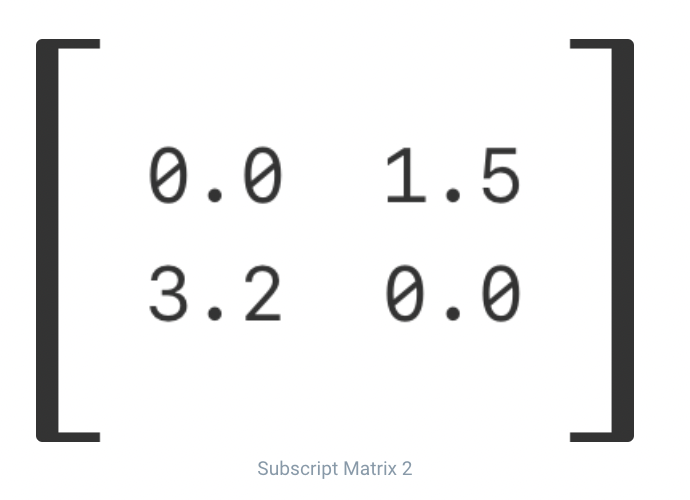 행렬의 값은 콤마로 구분된 서브 스크립트에 행과 열 값을 전달해 설정할 수 있다.