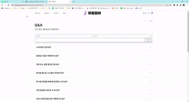 22.05.09 ~ 05.18 / 아힘영어 / 외주. 화상영어 쇼핑몰 사이트