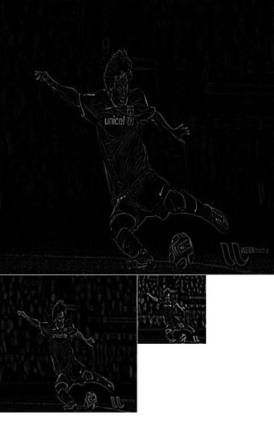 Gaussove piramide lahko tvorimo z uporabo Opencv funkcije pyrDown(). Rezultat te funkcije pri 4 plasteh piramide je prikazan na spodnji sliki.