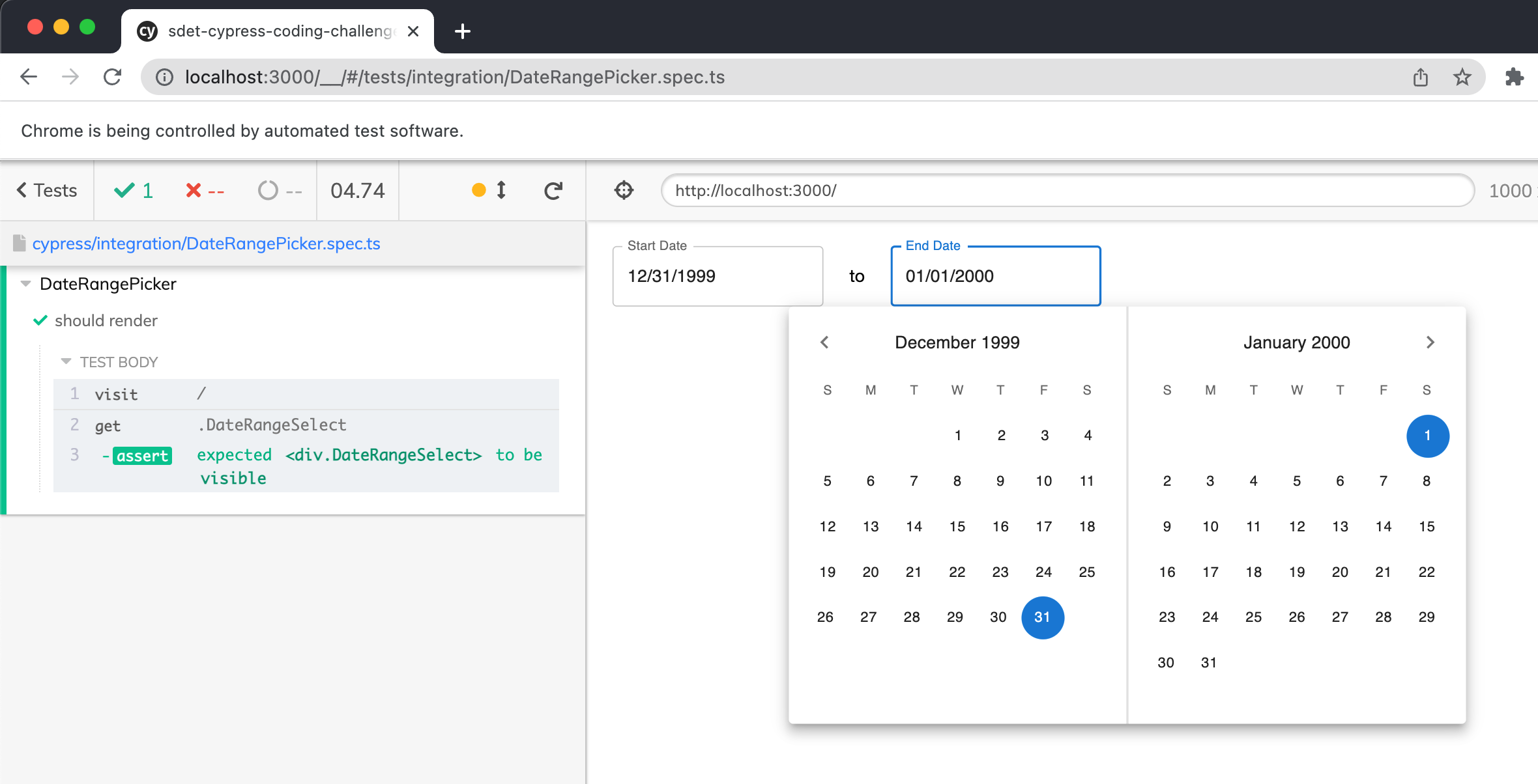 • Implement your tests in cypress/integration/DateRangePicker.spec.ts