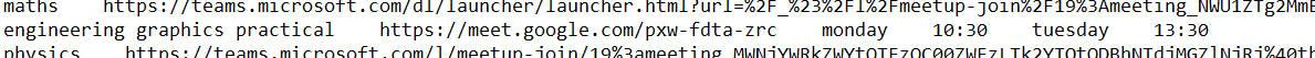In timetable.txt enter your class name then press tab class link then press tab then on which day and on which time class is there with tab's between them.