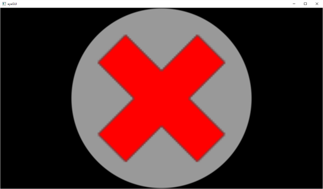 The program should compile if linked correctly and display a circular, window filling button with a red cross as icon.