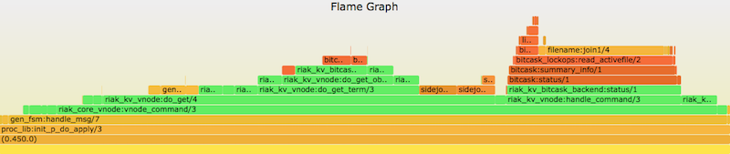 Also, during the 10 seconds that we were profiling, this process was asked to check its backend status. Since this Riak cluster is using Bitcask, we see the Bitcask-related activity for handling the status request(s).