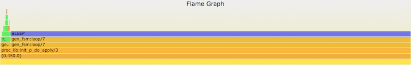 However, we know that the flame graphs are colored with "SLEEP" time as a purple bar at the top of the stack. We can use this command to strip out all Erlang process sleep time and create a new graph: