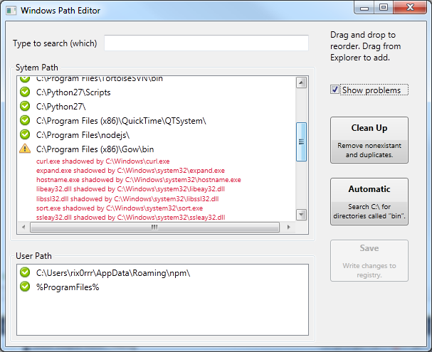 - Detect conflicts between directories on your path (diagnose issues like the wrong executable being launched or the wrong DLL being loaded).