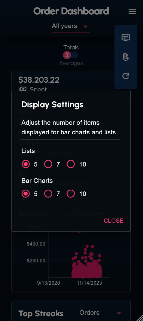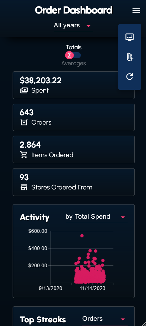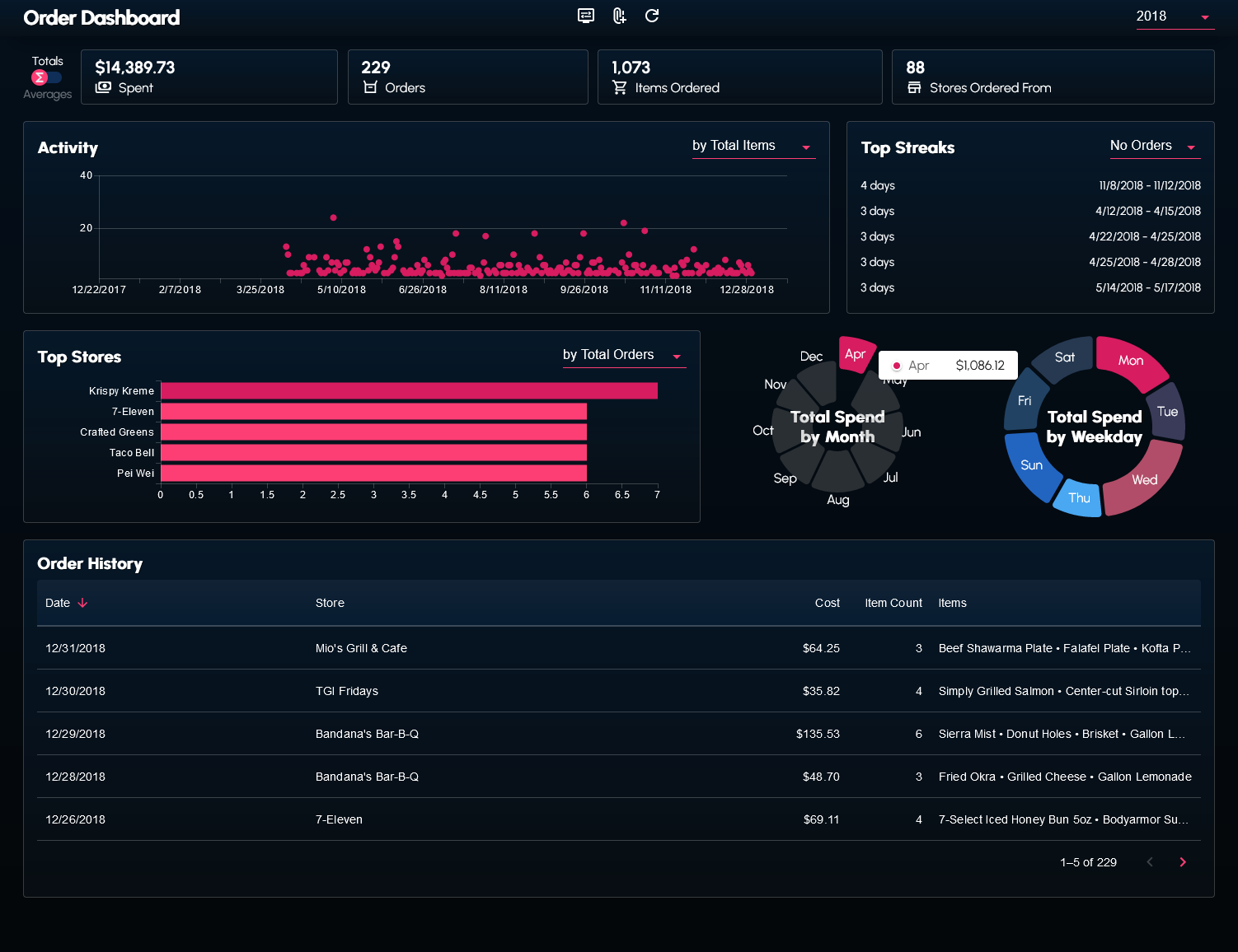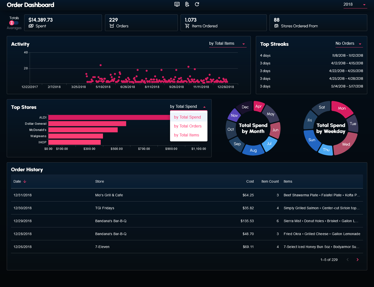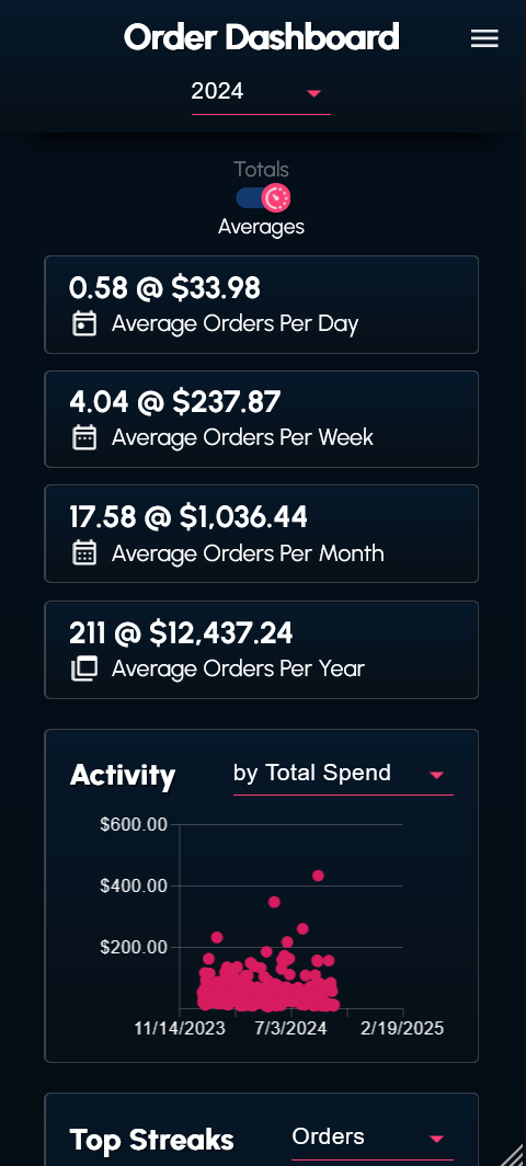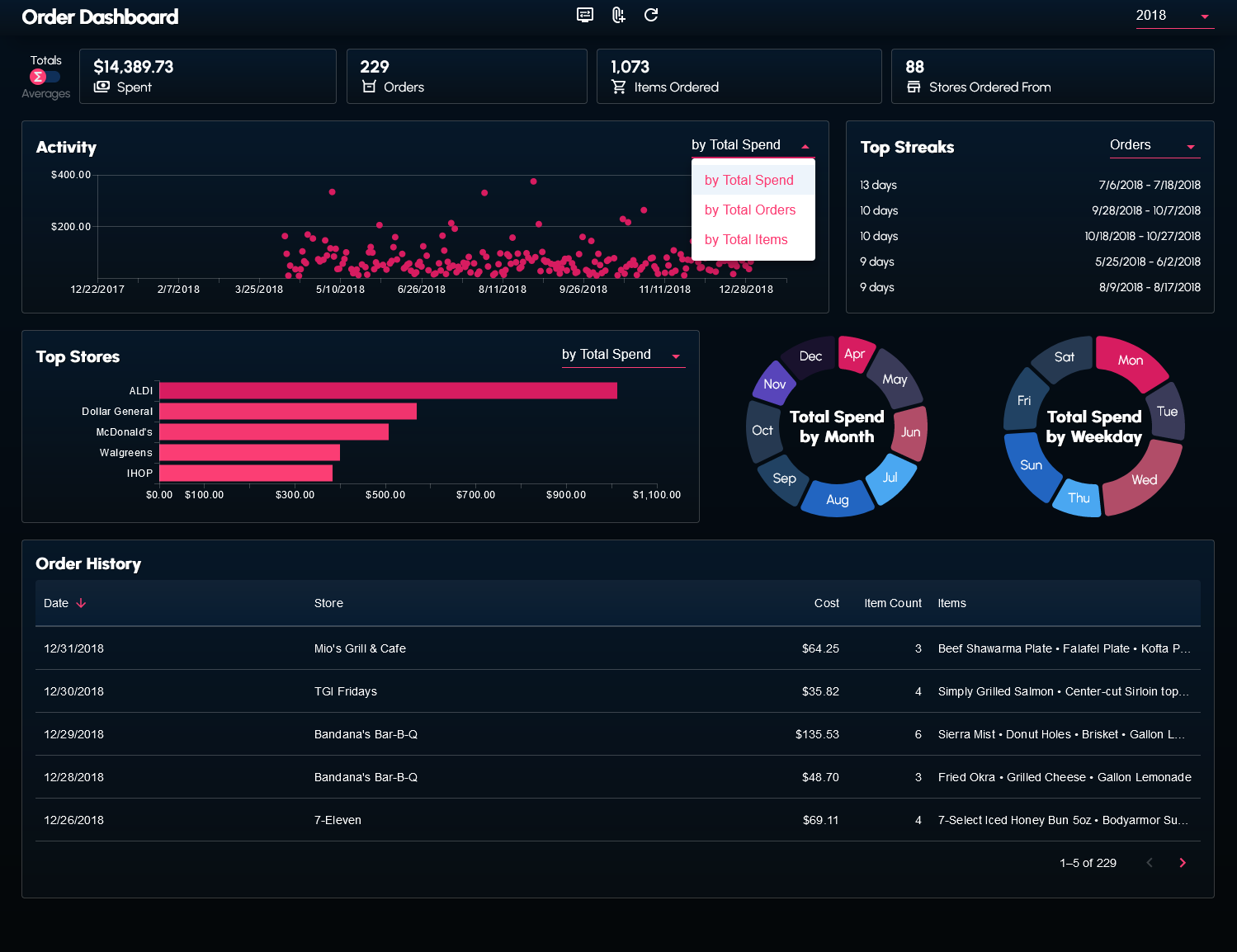 I wrote a couple scripts to web scrape and transform my order history data from the DoorDash website. The data (in the form of a JSON file) can be supplied to the dashboard.