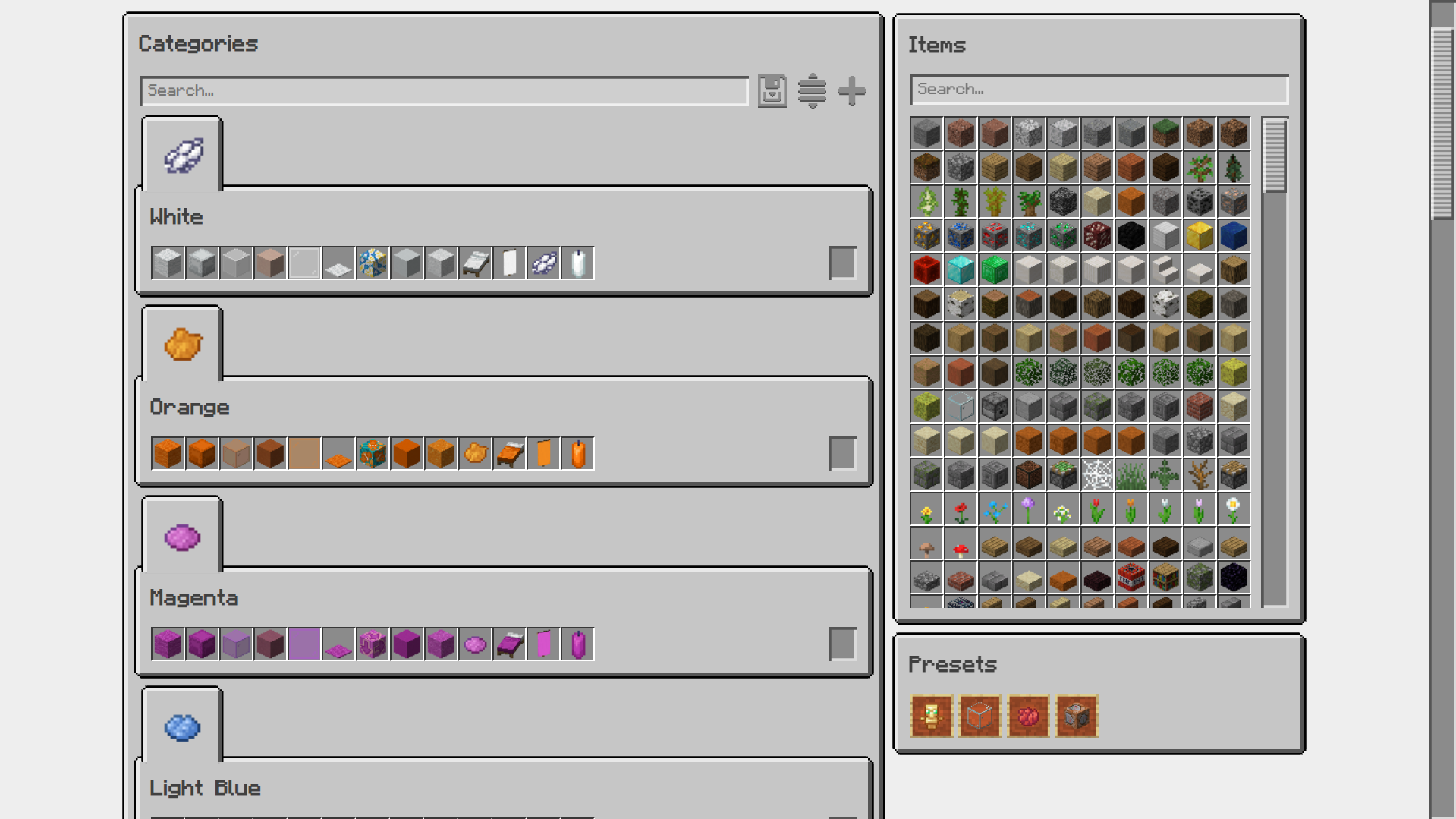 The concept is very simple and the execution even more so! Just start by creating the categories, customizing the name and icon, and then drag and drop the item in the the category you want they to stay in. I also prepared some presets in case you're not creative at the moment.