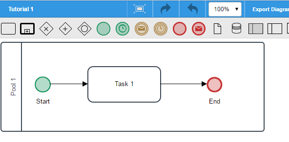 - In PM server, in designer panel, create a new process: 'Tutorial 1'