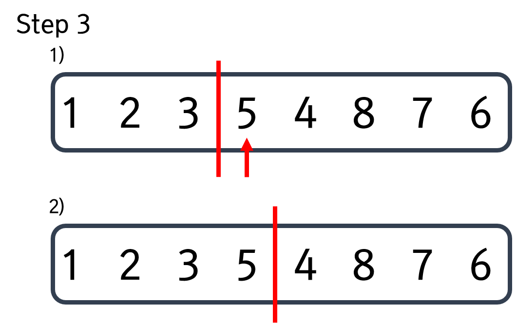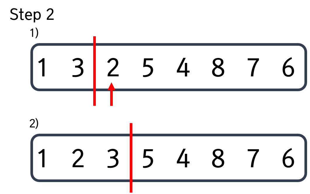 [ 3 1 2 5 4 8 7 6] 을 정렬해보자.