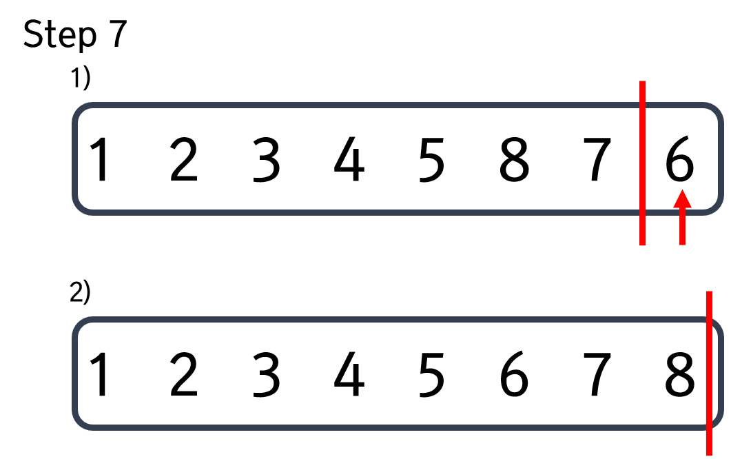 이미 자기 위치에 있는 원소는 옆에 있는 원소와 비교 연산 1회만 진행한 후 다음 STEP 으로 넘어가게 됩니다.