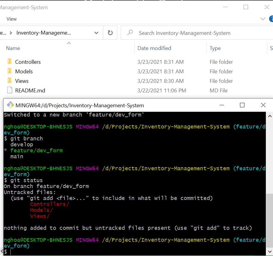 Bước 11: Tiếp tục checkout sang branch mới và lặp lại các bước trên